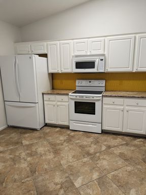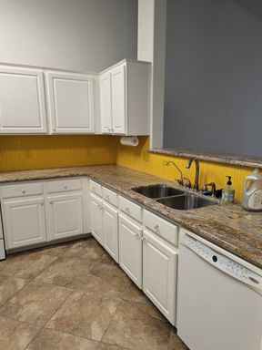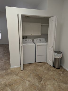 The kitchen offers ample cabinetry, generous counter space, and includes a washer and dryer for added convenience. Both bedrooms are nicely sized, with the primary suite offering privacy and an en-suite bath.