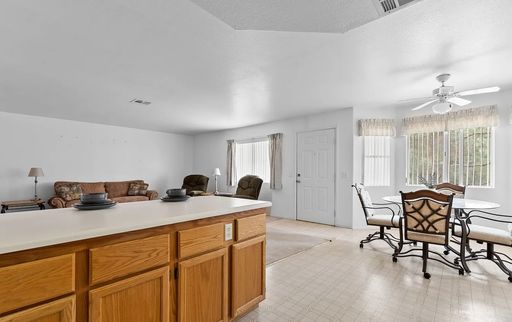 Open layout with breakfast bar seating