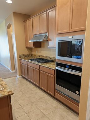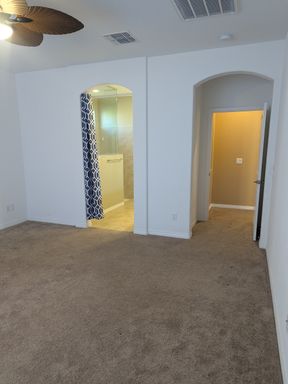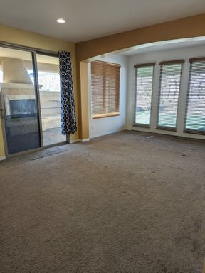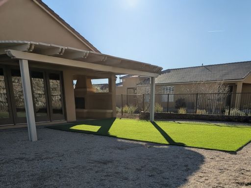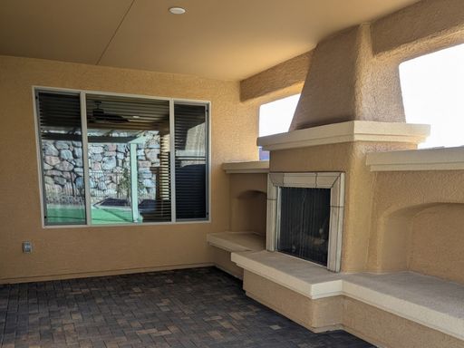The outdoor space is a true highlight—beautiful desert landscaping for easy maintenance, and a private covered back patio complete with a cozy fireplace and dedicated entertaining area. The fully fenced yard adds privacy and peace of mind.