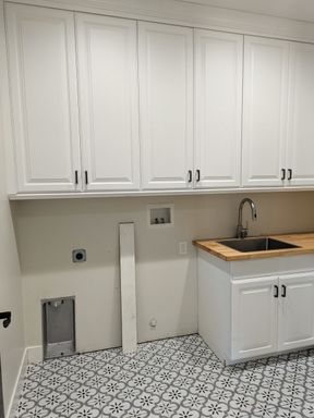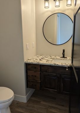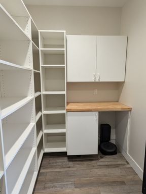 Additional features throughout the home include central vacuum, a dedicated office, mudroom area, and built-in closet organizers in the bedrooms for added storage and organization. The bathrooms feature modern floating cabinets for a clean, contemporary look.