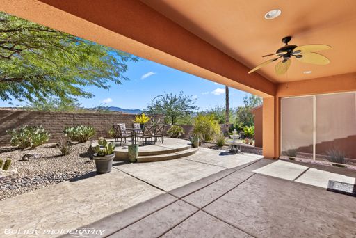 Step outside to your private desert oasis—an expansive, beautifully hardscaped patio surrounded by mature desert vegetation and enhanced by stunning mountain views. This outdoor living space is ideal for morning coffee, intimate gatherings, or sunset relaxation.