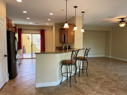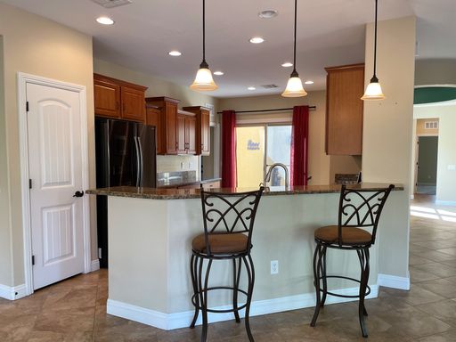 Welcome to the Sun City House in Mesquite, NV! This charming 2 bedroom, 2 bathroom home is situated on a corner lot with desert landscaping and a fenced yard. The double car garage provides ample parking and storage space. Enjoy the convenience of a courtyard area just off the kitchen, perfect for outdoor dining or relaxing. The covered patio in the back is ideal for enjoying the beautiful desert evenings. Inside, you'll find modern amenities such as a water softener, granite countertops, kitchen pantry, and tile flooring. The den/office space and walk-in closet offer additional storage and flexibility. This home is located in a 55+ community with access to Sun City amenities. Don't miss out on this opportunity to lease this lovely home! Apply now before it's too late.
