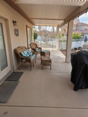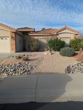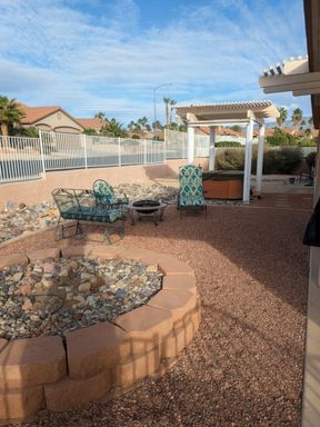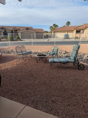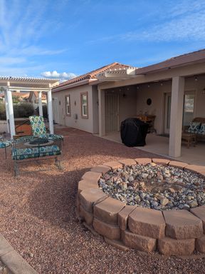 Enjoy low-maintenance desert landscaping, covered patios, solar screens, and an above-ground hot tub—perfect for relaxing and entertaining.