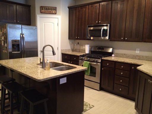 Ivory townhome in excellent condition. Granite counter tops in kitchen and bathrooms, two-tone paint and stainless steel appliances. Washer/Dryer Hookups. Community Pool and Hot Tub. Yard Care Included.