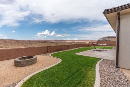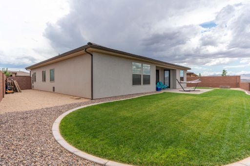 One Level. Beautiful Views. This home has beautiful unobstructed views in the backyard that is fully landscaped. This is one of the fastest growing subdivisions in St. George, Utah. It's located in a great area with new schools being built, quick and easy access to highways, the airport, and hiking trails.