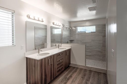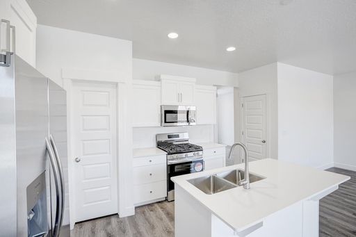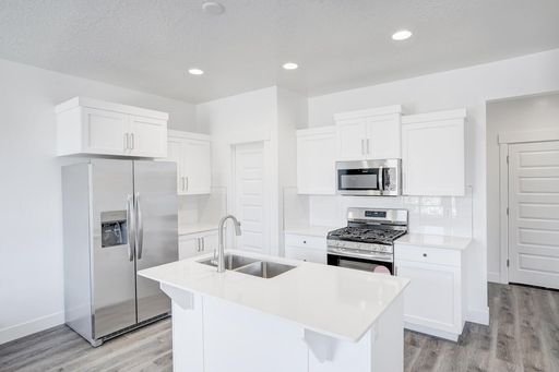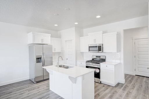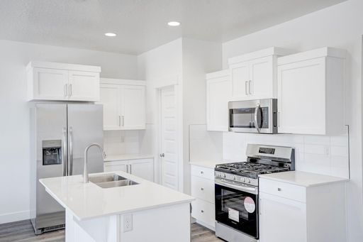 Spacious 4 bed, 2.5 bath home with a 2-car garage in the brand-new Desert Terrace community. The primary bedroom is located on the main level for added convenience. Interior features include EVP flooring in main living areas and bathrooms, upgraded carpet in bedrooms, quartz countertops throughout, stainless steel gas appliances, modern cabinetry, and a kitchen backsplash. The community offers a park, trails, and nearby amenities. NOTE: Photos are of a similar property, updated pictures to come.